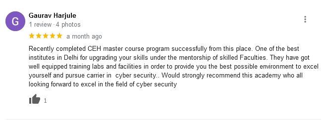 He completed his CEH v12 Certification Training from Craw Security last month and is very much delighted to share his thoughts on our Google Review section.  Now, he is looking forward to excelling in the field of IT Security by pursuing some other courses offered by Craw Security.